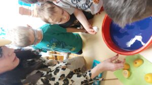 Sagatavošanas grupas “Pasaciņa” bērni ar lielu prieku iejutās skolotāju lomā un devās ciemos pie grupas “Pīlīte” mazajiem draugiem. Viņi rādīja aizraujošus eksperimentus ar ūdeni un ledu — lēja, vēroja, salīdzināja, bet mazākie ar spožām acīm visu izmēģināja paši. Tas bija skaists brīdis, kurā satikās draudzība, sadarbība un prieks par kopīgiem panākumiem.