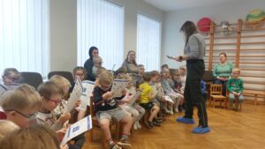 Nodarbības noslēgumā bērni piedalījās jautrā un izzinošā viktorīnā, pārbaudot savas zināšanas par drošību. Par aktīvu līdzdalību katrs bērns saņēma dāvanā uzdevumu komplektu.