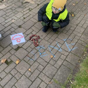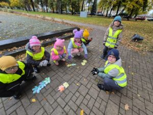 Izbaudot krāšņo parka ainavu, bērni nostiprināja savas zināšanas arī par prievārdiem. Vāca lapas, zīles, kastaņus, no kuriem izlika koku, sēni un citus sev vēlamos priekšmetus, darbojoties bērni varēja izmantot atgādnes. Zem radošā darba uzrakstīja tā nosaukumu.