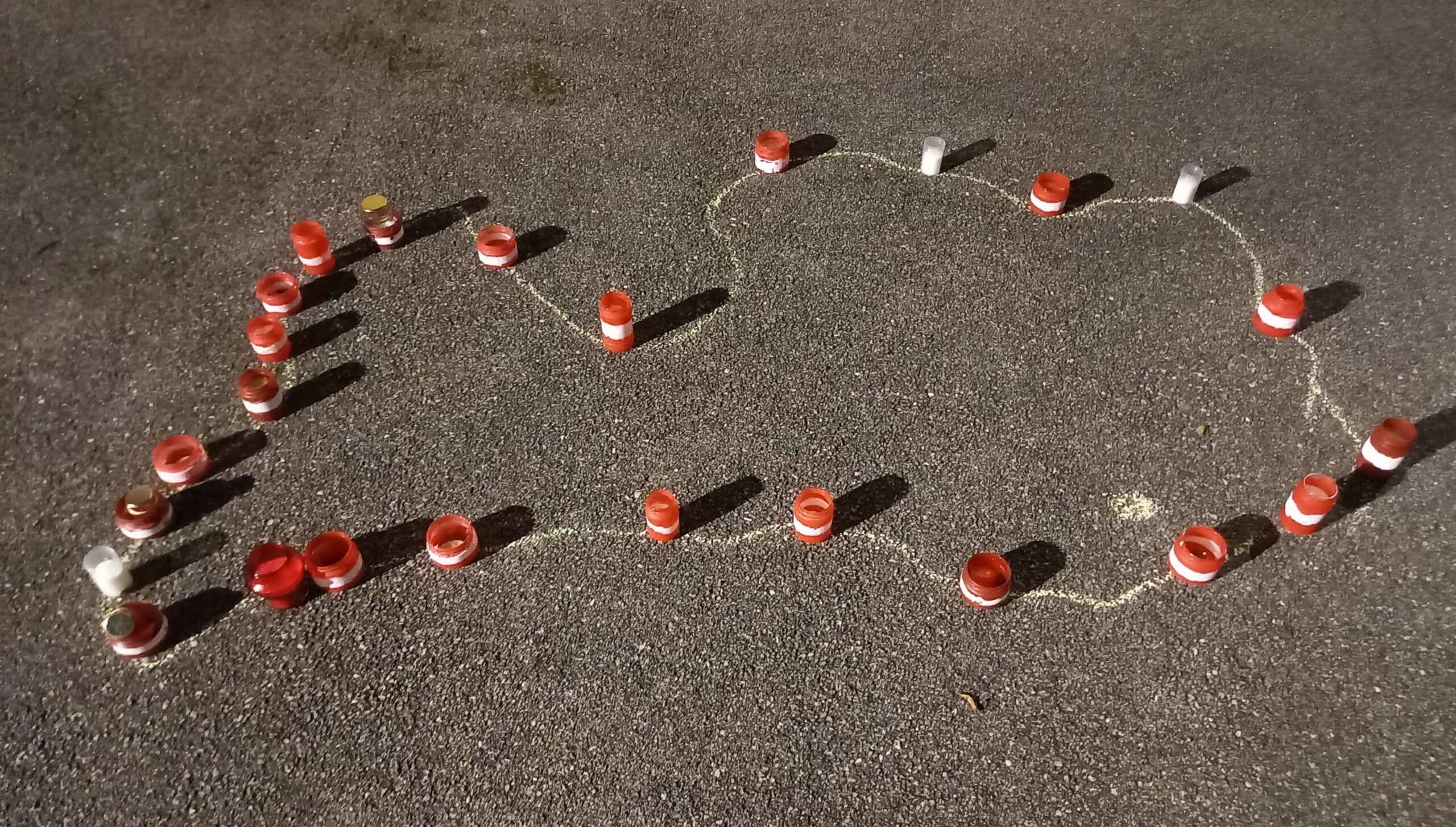 Pagalmā tika iedegtas svecītes Latvijas kontūras formā un mazas gaismas liesmiņas mirdzēja dārziņa logos.