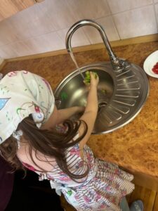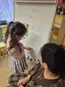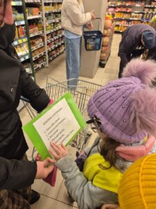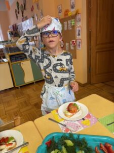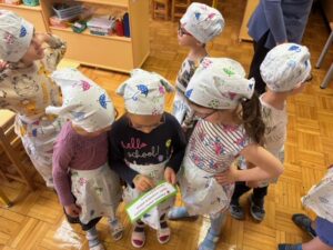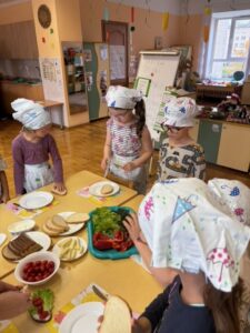 Pēc veikala apmeklējuma bērni pārvērtas par īstiem mazajiem pavāriem! Kopīgi izgatavojām sviestmaizes – izvēlējāmies pilngraudu maizi, svaigus dārzeņus un gardu sieru. Katrs bērns varēja pats izveidot savu veselīgo un krāsaino sviestmaizi, mācoties gan pašapkalpošanās prasmes, gan rūpes par savu uzturu.
