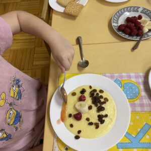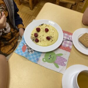 Jau no rīta bērni ar interesi runāja par to, kādu putru ēd mājās, un kāpēc putra ir tik veselīga. Brokastu galdā bērnus gaidīja putra, kuru tie varēja pagaršot pievienojot no mājām atnestos augļus, ievārījumu, sēkliņas un medu, bērni izvēlējās sev mīļāko un lepni stāstīja, kādu putru ēd mājās.