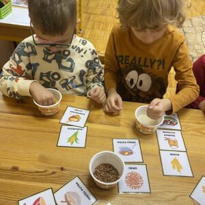 Kopā pētījām dažādus graudus – auzas, miežus, griķus un rīsus, taustījām, šķirojām un uzzinājām, no kā top putra. Grupiņā gatavojām meistardarbu un pārvērtāmies par putras pavāriem.