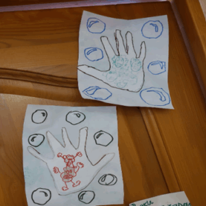 Šie mirklīgie un mirdzošie burbuļi kļuva par iedvesmu radošajam darbam: “Ziepes ne tikai aizdzen mikrobus, bet arī rada skaistumu!” Bērni uz papīra veidoja abstraktus zīmējumus, iesaistot ziepju burbuļus savos mākslas darbos, tādējādi simboliski savienojot tīrību un krāsu prieku.